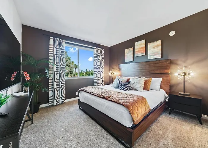 Gelegen in de Beverly Hills wijk, dit aparthotel is binnen 2 km afstand van de La Brea teerputten. Dit hotel is op 20 minuten lopen van het centrum van Los Angeles gelegen. Het Los Angeles County Museum of Art is op 25 minuten wandelafstand van Beverly Hills 2 Bed 2 Bath Penthouse With Den And Parking 414 Los Angeles gelegen. De dichtstbijzijnde bushalte is Robertson & Clifton op 350 meter loopafstand, tevens is er 7th St/Metro Center treinstation op 13 km verderop.